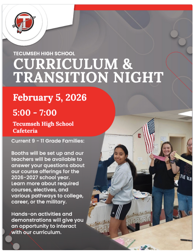 TONIGHT IS THE NIGHT!First Annual Curriculum & Transition NightThursday, February 5, 2026 Tecumseh High School will host our first annual Curriculum & Transition Night from 5:00 - 7:00 in t...